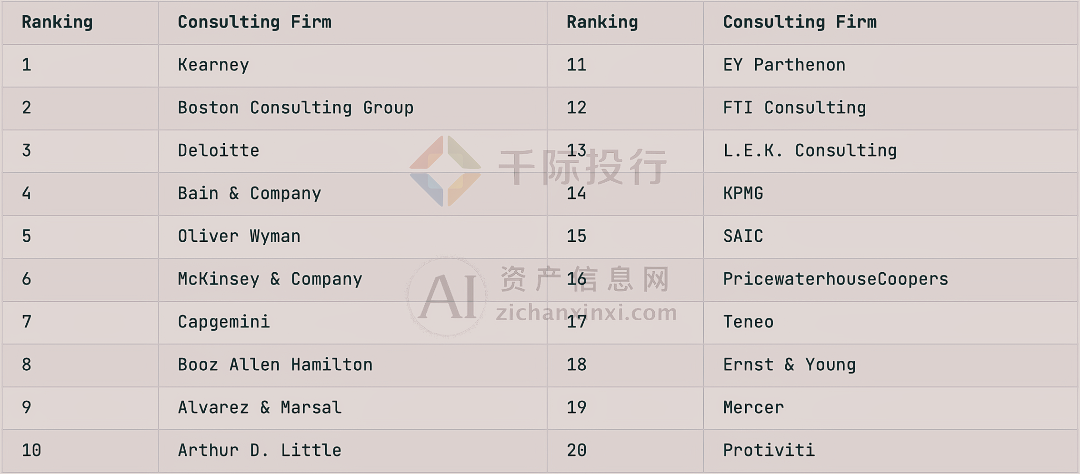 表:排名前20的咨询公司
