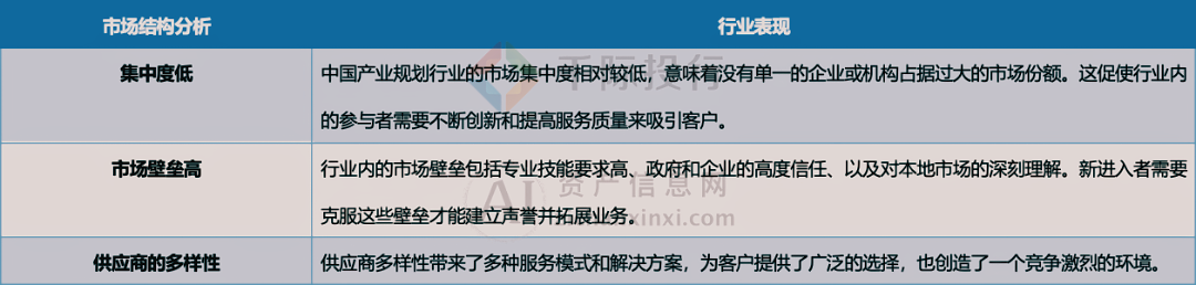 整体来看,产业规划行业的供应端呈现出多样化和分层化的特点,各类供应商在市场上形成了丰富的服务生态。但同时,由于行业的专业性和复杂性,供应商面临的挑战也在增加,如需不断提升服务质量,跟上技术创新,以及满足日益变化的客户需求。