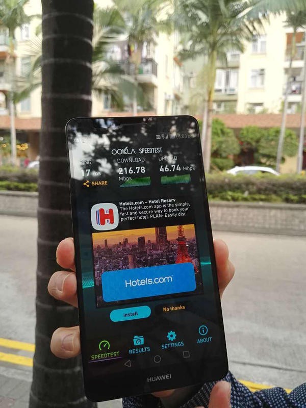 在香港电信盈科大厦附近以及荔枝角公园,搜狐科技实地体验了PCCW部署的4.5G网络,峰值达到834M,峰值为1.2G,下载一部影片也就几秒钟。