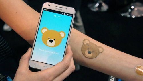 该款智能温度计也是利用了数字纹身的原理,不过它印在身体上的是一个小熊的图案,这是一款专为儿童设计的智能电子温度计。