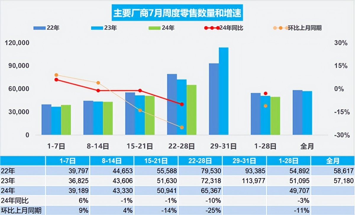 中国汽车流通协会表示,近几年夏季车市“淡季不淡”的特征日益明显,2014-2019年的7月车市零售占全年总量平均为6.9%,而2020-2023年的7月车市零售占全年总量平均为8.4%,其中2023年更是达到8.8%。