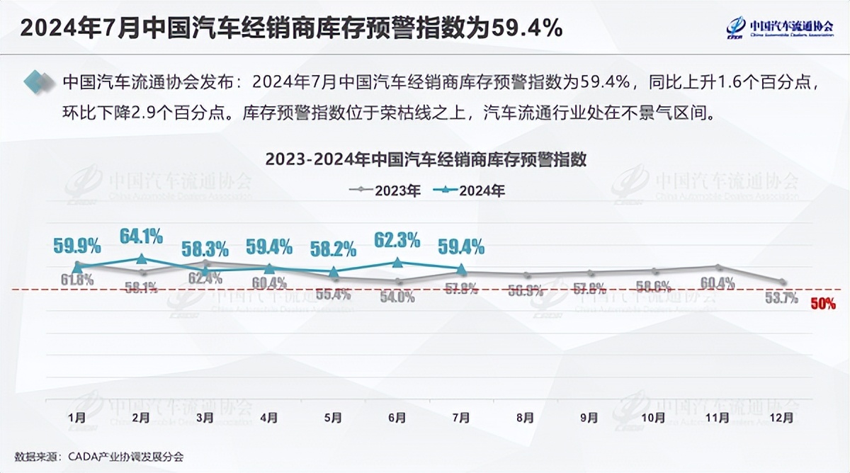 最新一期“中国汽车经销商库存预警指数调查”数据显示,今年7月中国汽车经销商库存预警指数为59.4%,同比上升1.6%。另据相关数据,国内新能源汽车的库存量已经超过106万辆,甚至超过了2022年全年的销售总量。
