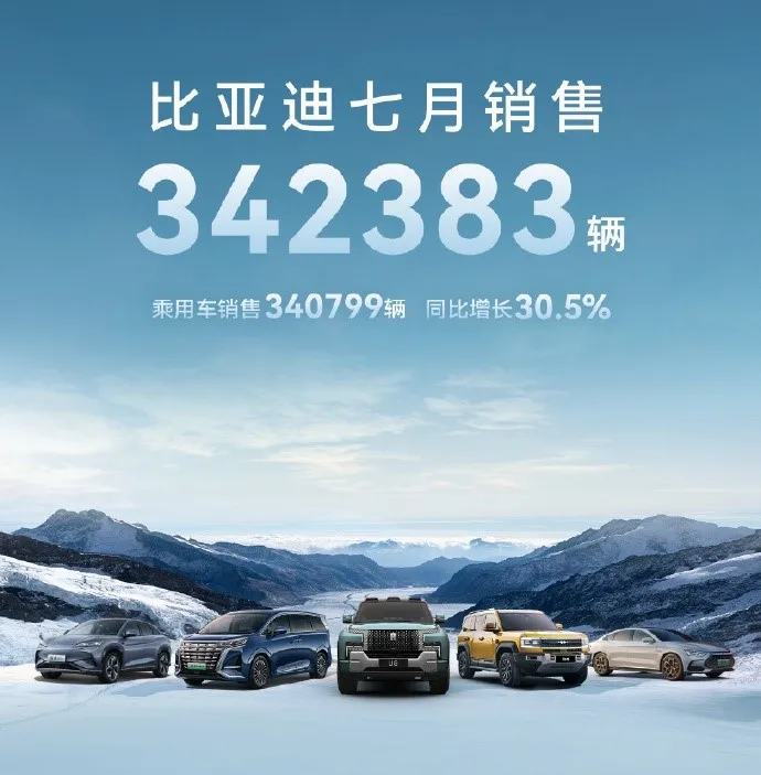 具体来看,比亚迪仍然稳占鳌头,新能源汽车销量为342383辆,同比增长30.50%;理想汽车交付新车51000辆,同比增长49.4%;赛力斯新能源汽车销量达42176辆,同比增长508.25%;蔚来新能源汽车销量为20498辆,同比增长0.18%;小鹏汽车共交付新车11145台,同比增长1%;小米SU7交付量超10000台,预计8月交付量将持续破万……