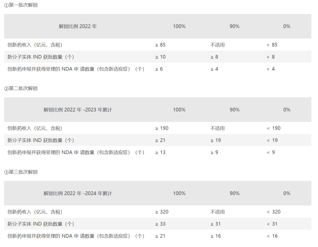 每个季度末,公司会将每一个项目向所有员工公示,并奖励完成进度的员工。每个项目的成败都关系着公司的命脉。抛开行权价格不谈,恒瑞医药的股权激励行权条件就具备指导性,可以看出企业对于创新药发展的信心和魄力。