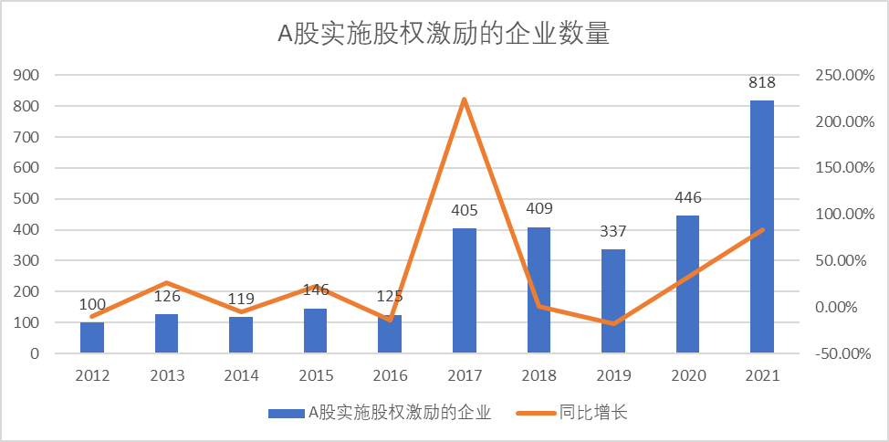 图:A股实施股权激励的企业数量,来源:Choice金融客户端
