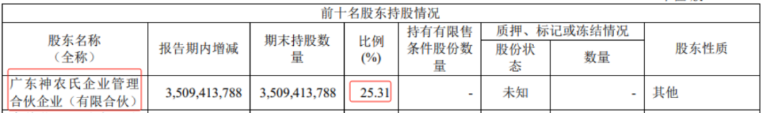 2021年4月,广东省揭东农商行依法申请对康美药业进行破产重整。同年12月,一家名为广东神农氏企业管理合伙企业(下称“广东神农氏”)的公司入主康美药业,以25.31%的持股比例成为第一大股东。