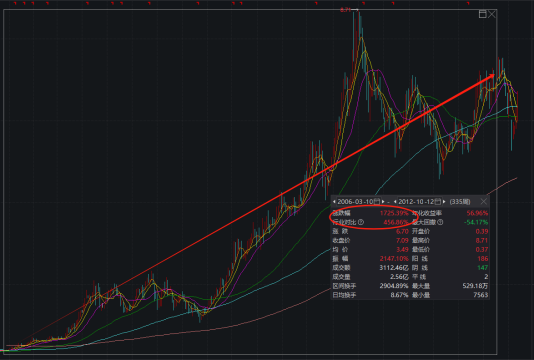 在逐年大增的业绩带动下,康美药业的股价也是芝麻开花节节高。2005年6月,康美药业的股价还在0.4元(前复权)附近徘徊;而到了2012年10月,公司股价已经一路涨至7元(前复权)附近,涨了约17倍。