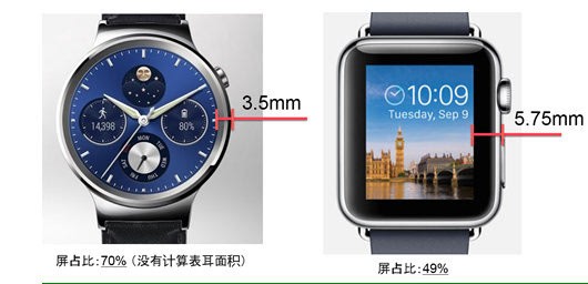 相信许多佩戴过智能手表的用户,都会纠结智能手表表盘四周的大黑边。但HUAWEI WATCH却完美解决了这个目前智能手表的“通病”,拥有更窄的边框和更大的屏幕有效面积。
