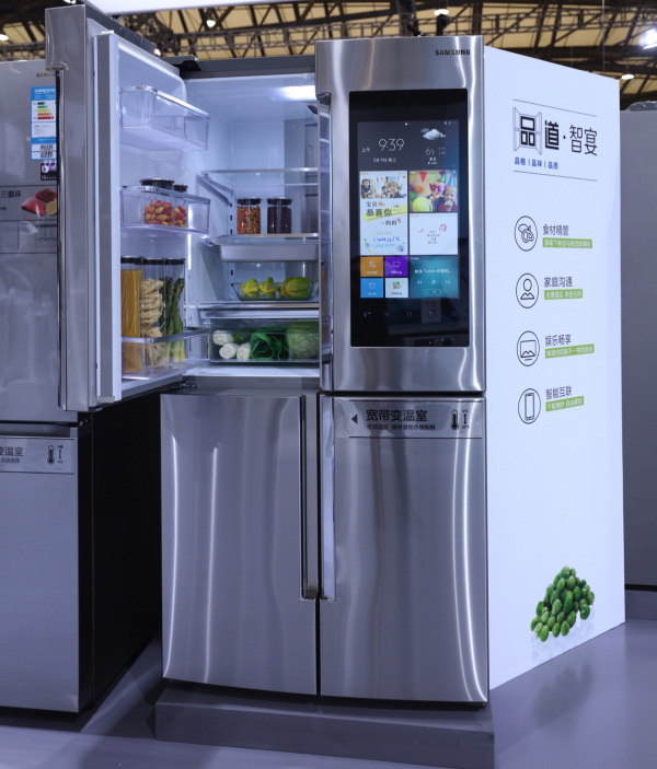 在此次展会上,大部分家电企业都展出自家的智能家居产品。例如,三星品道智宴RF60K9560SR/SC冰箱配备了一块21.5 英寸全高清液晶显示屏,通过它不仅可以实现生鲜食材在线购买,还可通过信用卡一键下单,并同步分享购物清单,获得更加便捷的线上购物体验;美的电器推出的智能风扇,可以通过手环等穿戴设备获取用户的睡眠状态,根据用户的睡眠状态会自动调整吹出让用户舒适睡眠的风,同时风扇可以与空调等设备进行智能联动,为用户提供贴心而舒适的体验等。