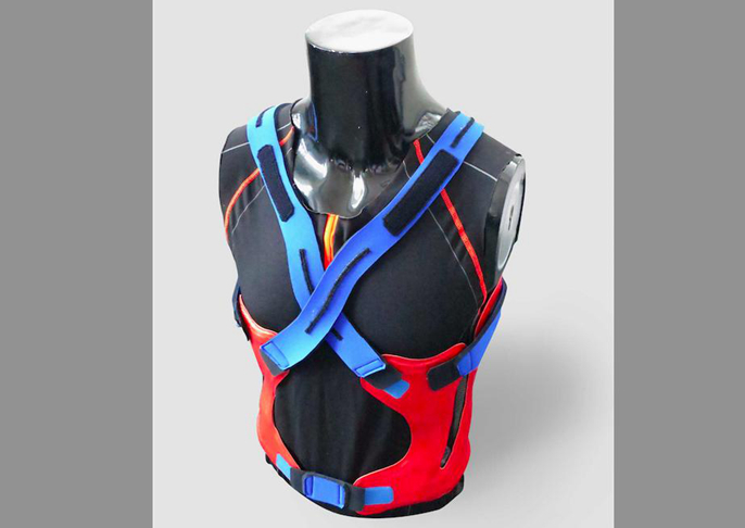 这款智能背心能够穿在普通衣服外面,用户可以依此保持正确的姿势,能够通过硬度的调整来辅助用户的日常活动。背心内部含有传感器和警示灯,一旦用户做出了不正确的姿势,例如直腰搬东西或是扭腰移动重物的时候,警示灯会不停闪烁,将可能造成的伤害降到最低。