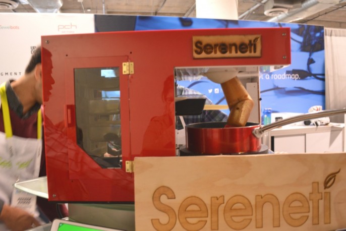 在CES 2016上还有Sereneti Cooki。它没有把所有东西都包在一个壳内,其烹饪过程是开放的。有多个托盘盛放食材,这些托盘会根据食谱,在适当的时候翻转,把食材倒进锅内。电感应加热器烹饪食材的时候,机械臂会搅拌食材。CEO Timothy Chen希望和Blue Apron这样的公司合作,对方负责提供预先包装好的食材托盘,这样就能省掉准备食材这一步。