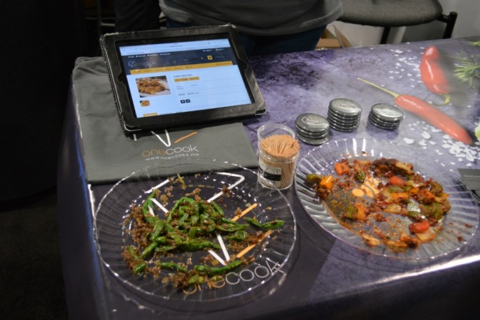 原型机还没能发售。它看起来就像个便携空调。里面有多个盛放食材的容器和一个可以加热的锅。此外还有搅拌器和排出热水的空间。OneCook不够大,不足以翻转牛扒,但它可以煮通心面和芝士。我路过的时候,尝了一下煸炒四季豆,虽然有点软,但很美味。