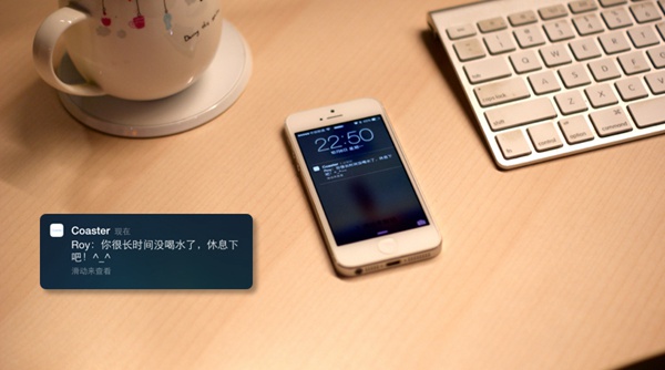 这个Coaster 智能杯垫,就是能帮你和伴侣进行配对的神器,在绑定Coaster的帐号后,可以随时关注TA的饮水情况,在TA忘记喝水时还可以送上贴心提醒。