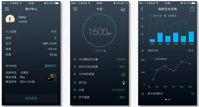 Coaster还会根据你的体质、所在位置的气候状况以及你的历史饮水习惯等数据,为你量身制定每天的饮水计划。并且能在你需要喝水的时候进行提醒。