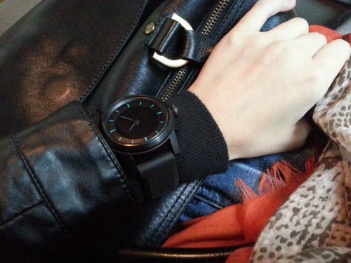 cookoo Watch有粉色、黑色等多种颜色可选。它还有其它比较贴心的功能,比如可以帮你寻找手机或者间隔一定距离遥控,手机拍照,当然未来还可以加入Wi-Fi 连接功能。侧边按钮还能当做Foursquare 签到的快速键,另外电池可以支持1年的待机时间并可以自行更换。