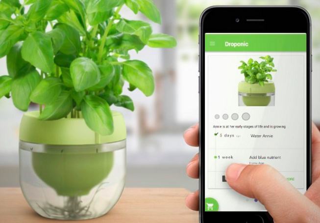 在城市里种出一个花园似乎是不可能的,但Droponic希望改变这一点。其菜园系统使得城市居民也可以在自己家里种出新鲜的菜蔬,只要“智能花盆”和追踪植物生长情况的智能手机App就可以了。