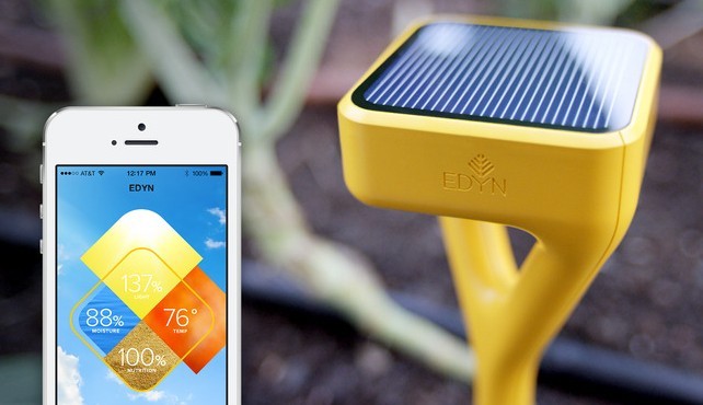 Edyn智能园丁是一看太阳能土壤检测器,能够实时监测土壤的养分,温度,湿度,水分以及阳光的光照。它会根据植物的一些特性,土壤的条件以及天气的转变等数据,然后给予用户一些种植建议。其配合Edyn智能水阀还可以与花园中的软管想连接,使用灌溉系统,可经过app手动操作进行灌溉,也可以设置其自动。同时Edyn智能园丁配套的App具有节水功能,就算主人家好久没有灌溉了,它也会自动控制以缓解旱情,保证植物由于缺水而死亡。