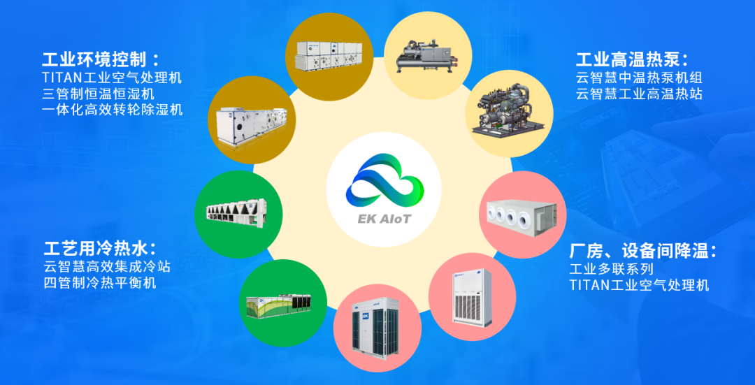 EK-AIoT不仅是一个物联网平台,更是一套深度融合IT技术,控制技术完整数智化控制解决方案,通过精细化的能源管理、智能化的节能算法和全周期的运维服务,为制造业高耗能企业提供从设备到决策的一站式服务。在全球低碳转型的大趋势下,EK工业空调助力各行业客户实现数字化升级、降本增效,共同开创绿色制造新未来。