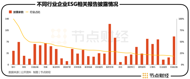 在行业分布上,A股上市公司的ESG报告披露率也呈现出明显的分化现象。银行与非银金融上市公司ESG报告的披露率名列前茅,而诸多从事传统制造业如石油石化、食品饮料、有色金属、轻工制造的A股上市公司ESG报告披露率则排在末尾。