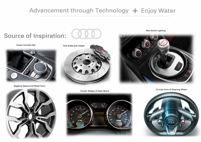 Hudōr Faucet 由著名设计师Fraser Leid设计,关于Hudōr Faucet 外观的假想也非常引人注意。Hudōr Faucet 的外观看起来并不像普通水龙头,更像是一个高科技烘干机。它的主体部分像是一个圆环,依附在墙壁上,很容易让人想到Audi,而后者也正是Hudōr Faucet 设计的灵感来源之一。