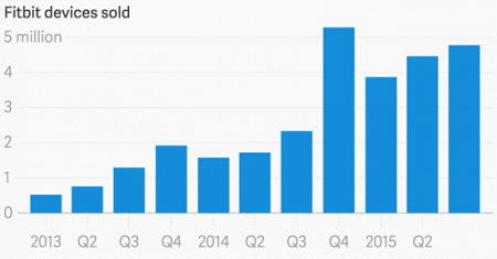 另外,反观去年Q4,同样的,Fitbit的销量也是一年当中最好的,销售额则同比13年整整增长了250个百分点。