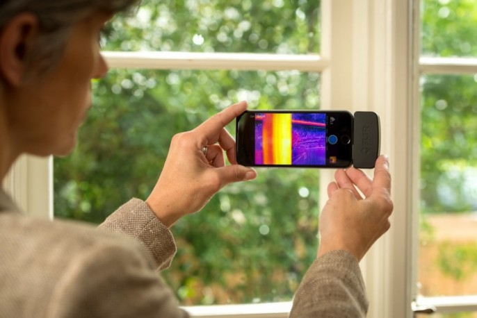 FLIR System 公司开发的 FLIR ONE,是一款智能手机配件。它能够跟苹果或者Android智能手机连接,为用户提供周围环境的实时热量分布图,并且测得的温度数据精度高。这就意味着用户能够通过这款设备,在黑暗中视物,查看肉眼看不到的热源,透过烟雾检查周围环境温度。在生活中这样的功能非常实用:比如说,它可以用来检测家庭能量利用效率,找到屋子里水管的漏水口等等,此外,烹饪,露营,野餐等等活动,也能排上用场。