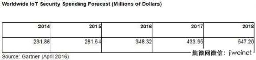 到目前为止对物联网安全性弱点的关注,大部分聚焦于一旦遭到破坏可能会导致严重损失或人员受伤、死亡的连网汽车或大型设备;Gartner预测,到2020年,针对企业的经确认安全性攻击中,有25%以上将涉及物联网。