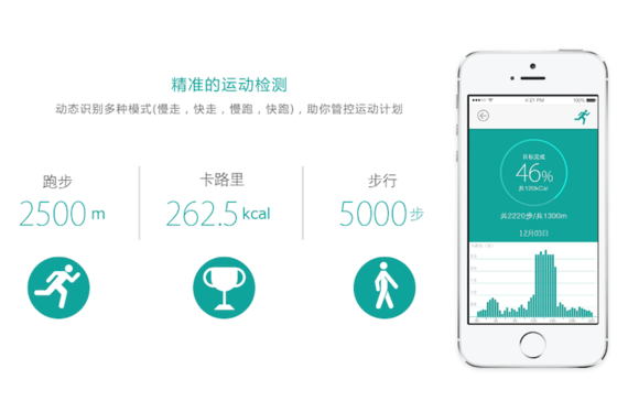 在运动追踪上,它号称具备 Gyenno-X 活动跟踪引擎,可检测到跑步、步行的数据和卡路里的消耗,而且它可以自动记录睡眠,而不是像 UP 那样主动记录。只是还没有实际上手产品,不知道它的数据准确度如何。