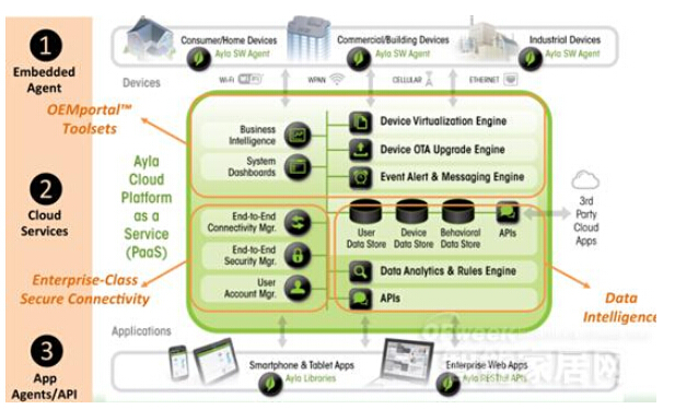 以AYLA的云平台为例,其架构团队具有亚马逊背景,因此一开始就面向的是品牌企业客户。除了基本的设备通信和控制功能外,企业级的安全性和后续的大数据智能开发是他的亮点。