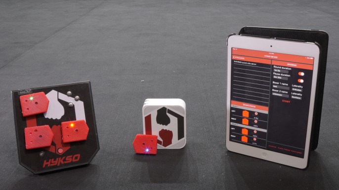 目前全世界约有3千5百多万人正在接受拳击类训练。不管是专业运动员还是拳击运动爱好者,现在有很多的科技穿戴产品都能够为他们服务。今天我们要为大家介绍的就是一款名为Hykso的可穿戴式拳击传感器,它能够帮助训练人员更好地提高自己的拳击技术。Hykso通过手腕上的运动传感设备,将用户手部拳击信息收集之后发送给配套的移动APP,通过实时的数据收集和分析,Hykso系统能够帮助用户自我训练,提高自己的技术。