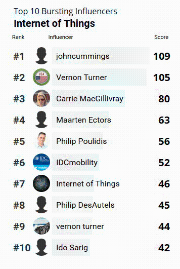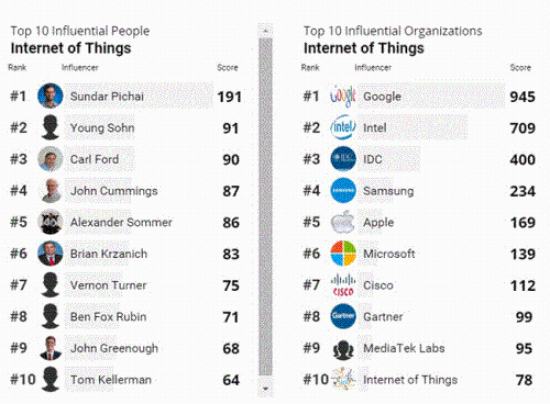 与此同时,IDC物联网研究的两位备受尊敬的研究专家Vernon Turner和Carrie MacGillivray也被评为物联网领域的重要影响人物。Vernon Turner是IDC企业系统高级副总裁及IDC物联网研究理事,而Carrie MacGillivray则担任IDC移动服务、物联网及网络基础设施的项目副总裁。