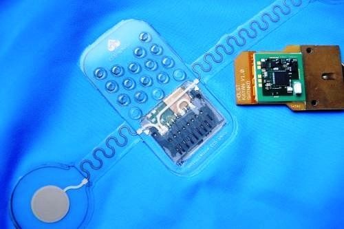 Imec/Holst开发的智能T恤,将控制电路放在一片SD记忆卡大小、可移除的电路板上,放在塑料小插袋中,透过软性导线与传感器链接。