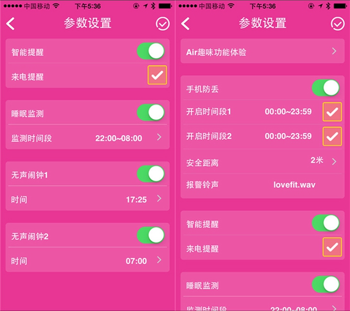 设置的个人资料中可以设置个人的性别、年龄、体重、身高,并能实现睡眠监测、来电提醒、智能防丢等趣味性功能。