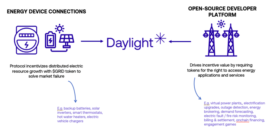 而分布式能源设备可以被网络连接在一起,模拟更大的发电厂以提高电网可靠性。Daylight就是从个人家庭出发,从底层构建新能源市场解决方案。