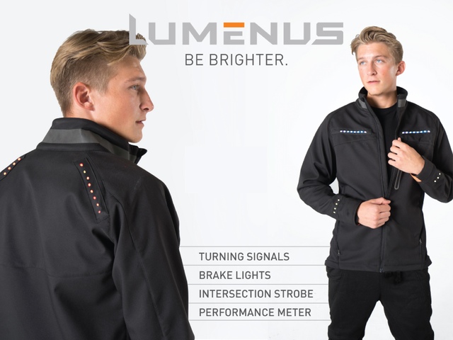 初创公司Lumenus推出智能LED外套和背包,旨在让骑车者和跑步者更安全。