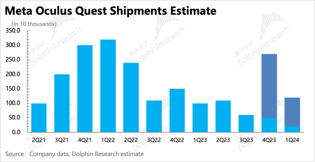 结合IDC数据以及收入的倒算,海豚君预计四季度Oculus整体销量100多万台,相比上季度明显回落。(均为海豚君预估值,仅作趋势参考)