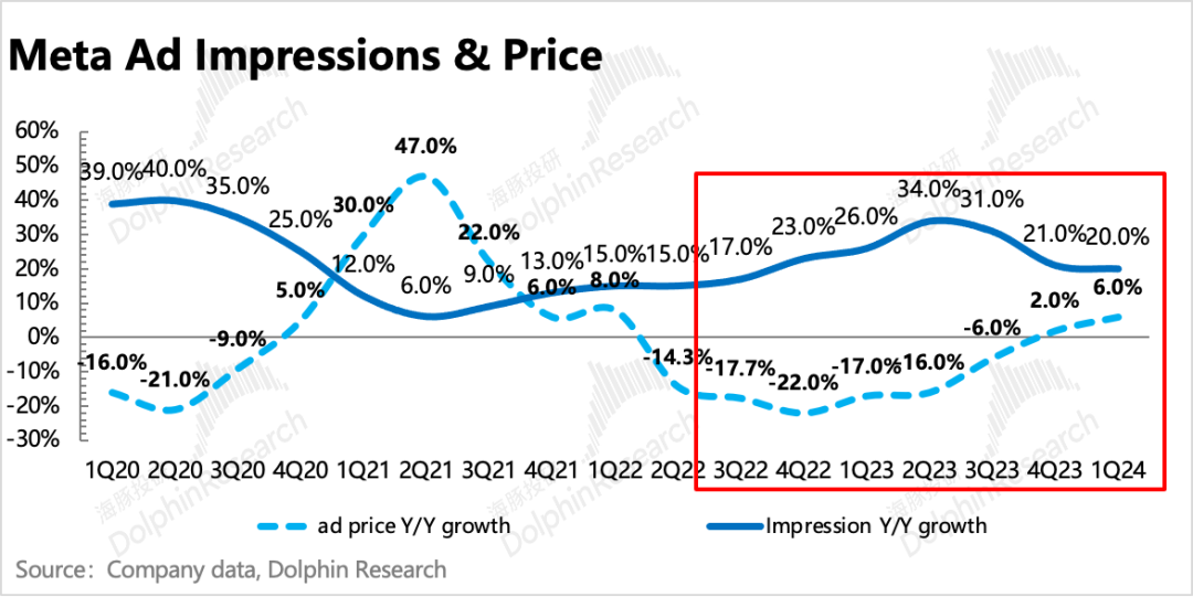 我们之前说,广告单价与经济是否是上行周期、平台竞争优势是否提升有关,但这是在Meta平台流量稳态的情况下。