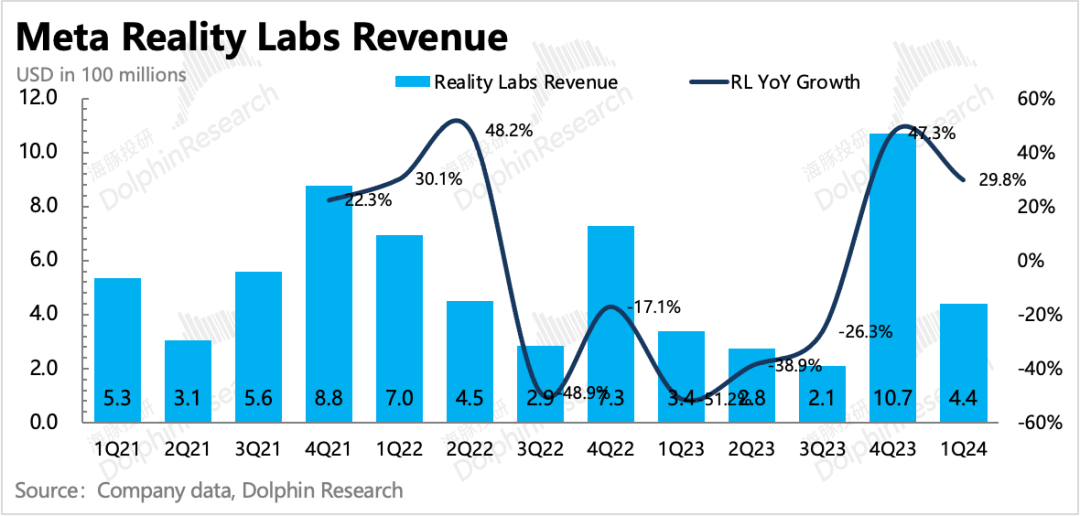 一季度VR收入又回归平静,低基数下同比增长30%,主要是Quest 3的新品热度很快过去。