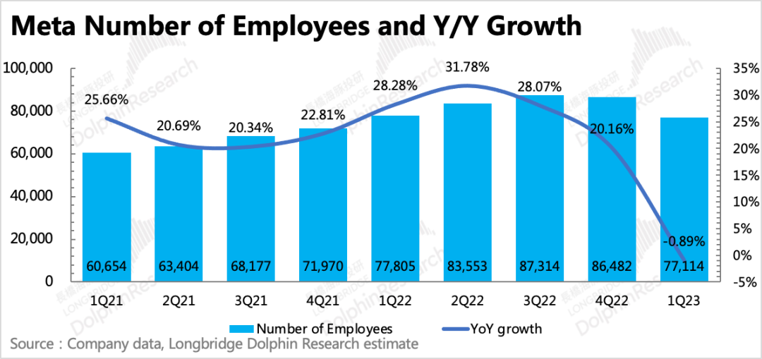 一季度还有裁员补偿、业务重组等一次性费用,因此效果还没完全体现。这个季度减少了近万名员工,3月Meta又宣布第三轮10000名的裁员计划,因此今年内预计还有约5亿的遣散费需要确认。