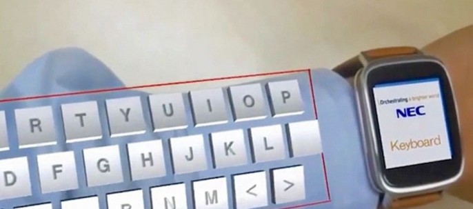 日本的NEC公开了一个增强现实(AR)概念:用户可以通过眼镜和智能手表在前臂的虚拟键盘上打字。此技术名为ARmKeypad, AR眼镜可以让用户看到前臂上的键盘,信息会输入到智能手表。