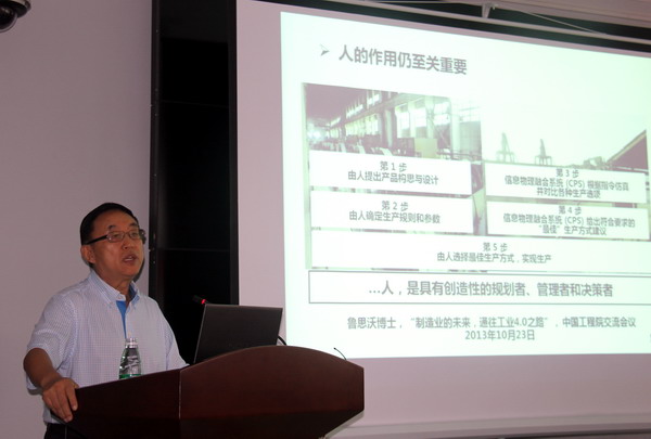本届高峰论坛上,中国工程院院士、国家自然科学基金委员会信息学部主任、中国通信学会物联网委员会高级顾问柴天佑发表了以“流程工业智能优化制造”为主题的演讲,柴教授指出,工业4.0的目的是利用分布式信息物理融合系统(CPS)通过嵌入式物联网技术相互协同,让生产资源形成一个循环网络,让生产资源具备自主性,可调节性及可配置的优点,由此生产出的产品本身具备独特的可识别性,生产设施可根据整个价值链进行自组织集成化,而生产工艺则可依据当前条件进行灵活地制定。