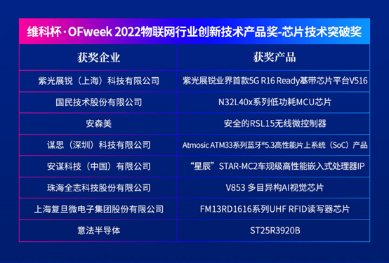 维科杯·OFweek 2022物联网行业创新技术产品奖-芯片技术突破奖