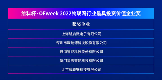 维科杯·OFweek 2022物联网行业最具投资价值企业奖