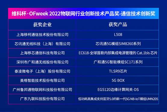 维科杯·OFweek 2022物联网行业创新技术产品奖-通信技术创新奖