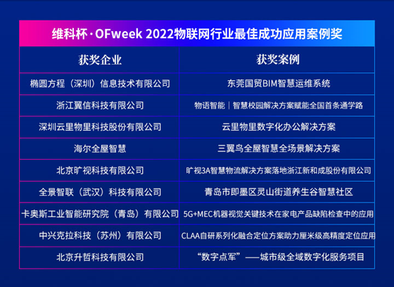 维科杯·OFweek 2022物联网行业最佳成功应用案例奖