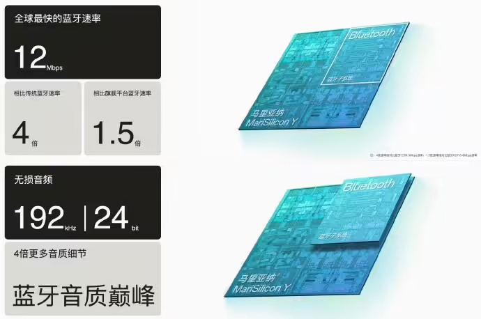 在这之前,OPPO 已推出两款马里亚纳芯片产品 ,MariSilicon X 和 MariSilicon Y。马里亚纳 Y 芯片采用 N6RF 工艺,首次将 192kHz / 24bit 无损音频无线化,搭载全球首个超高速蓝牙技术,最高带宽可达 12Mbps,4 倍于传统蓝牙速率,1.5 倍于旗舰平台蓝牙速率。