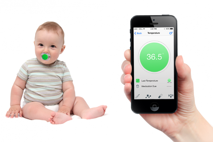 奶嘴由Blue Maestro公司研发,可以在“不惊动小孩的情况下”测量他们的体温,对于父母来说,这是一大卖点,因为不用弄醒小孩,也能检查其是否发烧。智能手机在奶嘴的30英尺(9米)范围内就可以了,换句话说,父母在隔壁房间也能查看小孩的体温。
