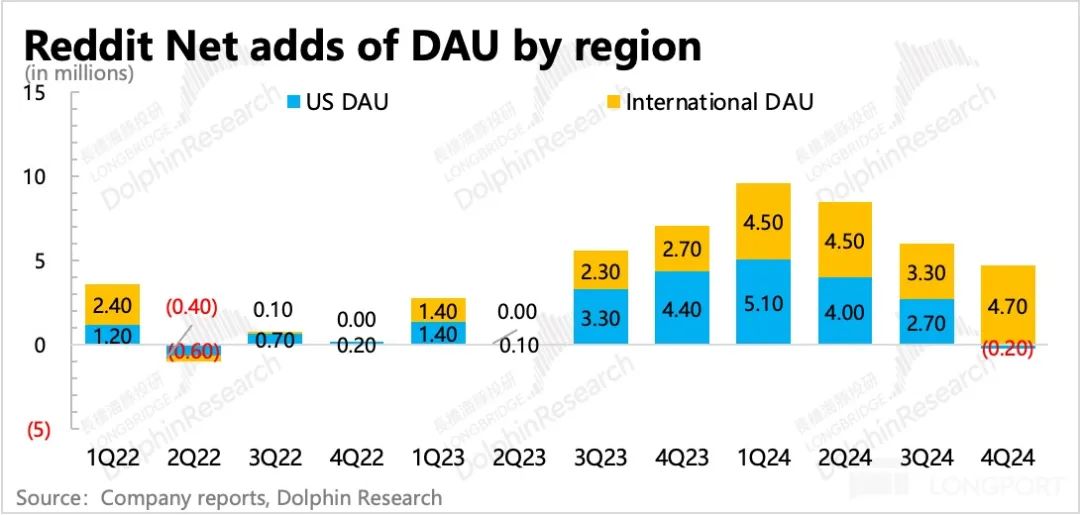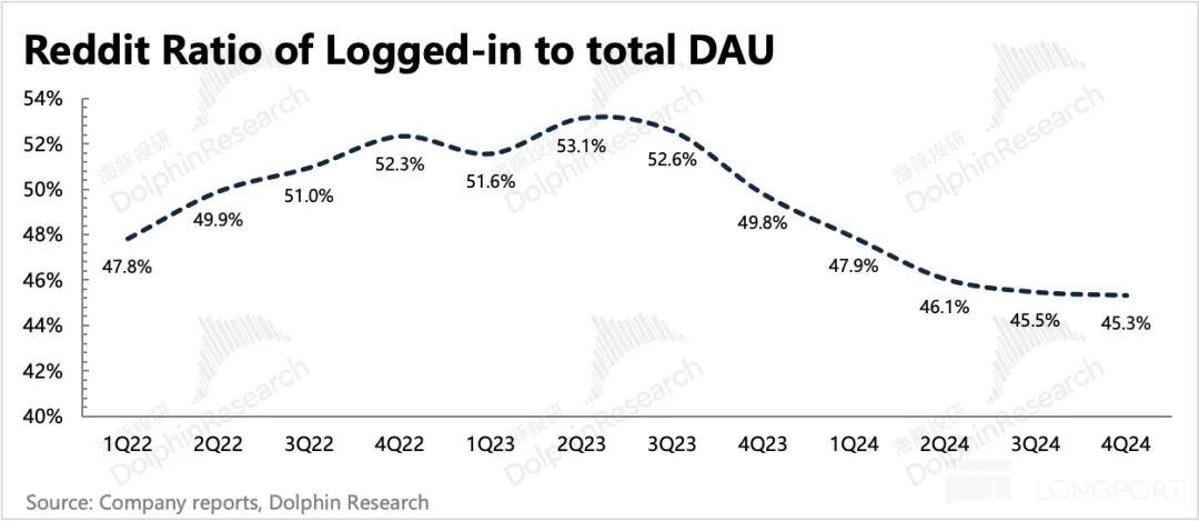 此外,管理层进一步解释为,短期非登陆状态的美国用户活受到的影响更多。海豚君认为,背后隐含了 Reddt 很可能是由于来不及适应搜索排名的调整,才导致美国用户出现了短暂失速。