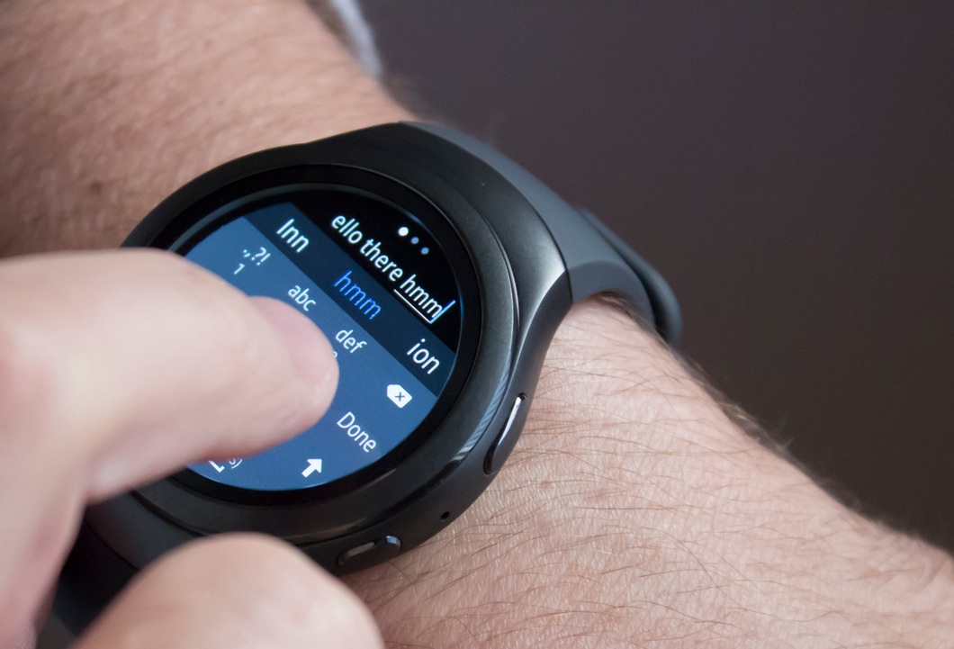如去年的Gear S,S2有屏幕键盘,这是竞争对手缺少的。在小屏幕上打字虽然还不是很好的体验,但三星虚拟键盘——手机九键键盘,每个键三个字母,文本预测通常都能知道你想输入什么——这是很好的优势。