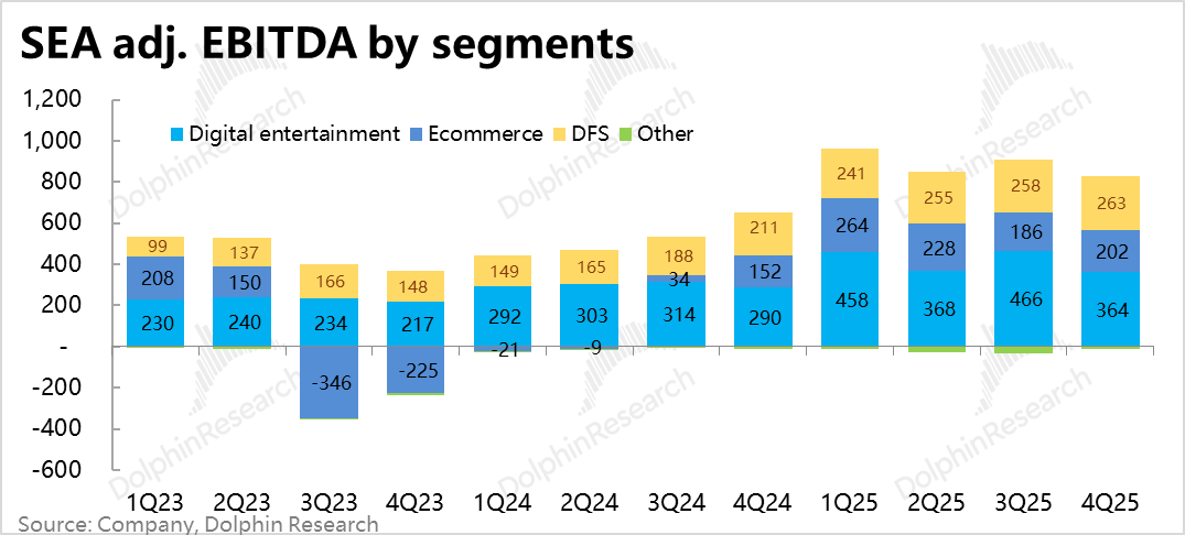 东南亚小腾讯Sea,3月3日晚美股盘前交付了25年4季度业绩,又是熟悉的“割裂”表现,一方面核心电商和金融板块增长都相当强劲,远超预期。另一方面,又因投入增加,所有板块利润则全部不及预期。但当前市场环境,还是相比增长更看重利润,因而又是一次暴跌。具体来看: